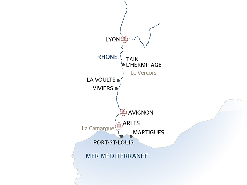 Partez à la découverte de la Provence authentique, qui combine style et raffinement. Tout au long de cette croisière, vous pourrez admirer la beauté des paysages qui subliment le Rhône. Des Baux de Provence, l'un des "Plus Beaux Villages de France
