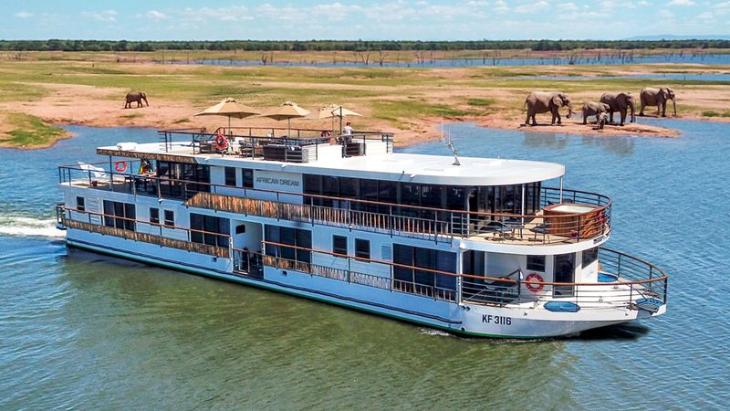 Navigation au lever du soleil vers Kariba. Débarquement. En route vers l’aéroport, découverte du «Spacedam wallSpace», le gigantesque barrage qui a fait sortir le Zambèze de son lit pour créer le lac en 1955 et qui dispense aujourd’hui près de 70% de l’électricité du Zimbabwe. L’histoire de la création de ce lac vous sera contée, avec les légendes qui l’entourent, dont celle du NyamiNyami, l’esprit du fleuve. Vol Kariba/Victoria Falls en avions privatifs. Déjeuner-croisière sur le Zambèze en amont des chutes.