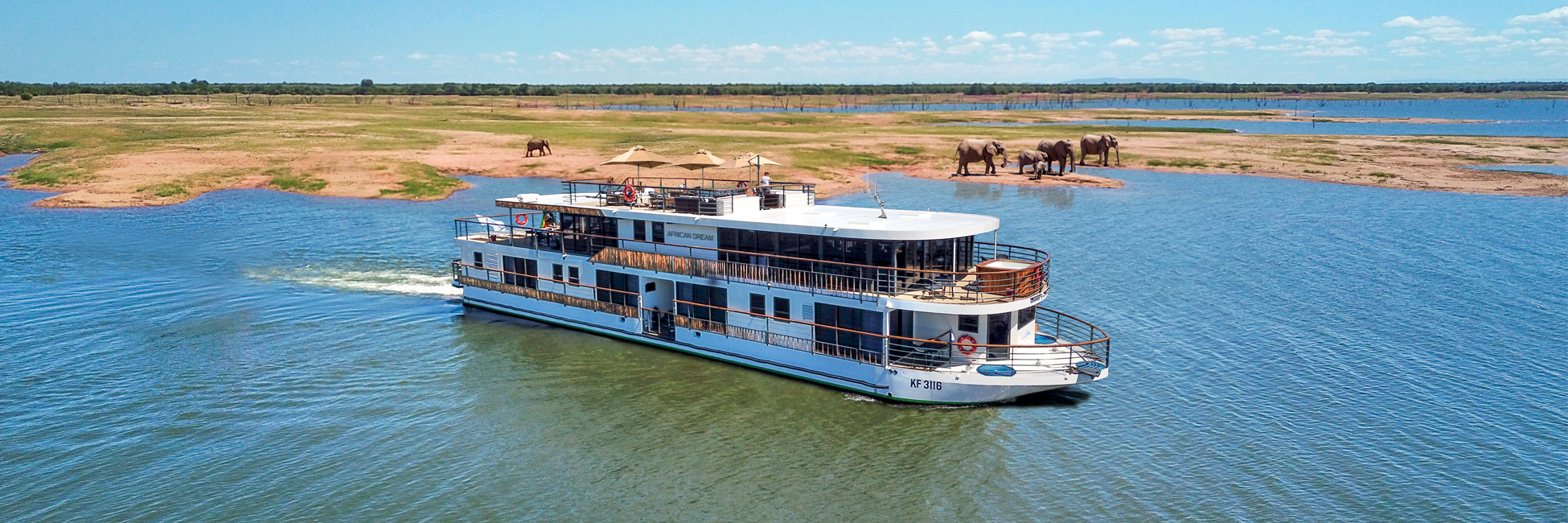 Navigation au lever du soleil vers Kariba. Débarquement. En route vers l’aéroport, découverte du «Spacedam wallSpace», le gigantesque barrage qui a fait sortir le Zambèze de son lit pour créer le lac en 1955 et qui dispense aujourd’hui près de 70% de l’électricité du Zimbabwe. L’histoire de la création de ce lac vous sera contée, avec les légendes qui l’entourent, dont celle du NyamiNyami, l’esprit du fleuve. Vol Kariba/Victoria Falls en avions privatifs. Déjeuner-croisière sur le Zambèze en amont des chutes.